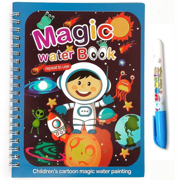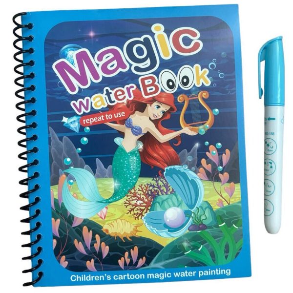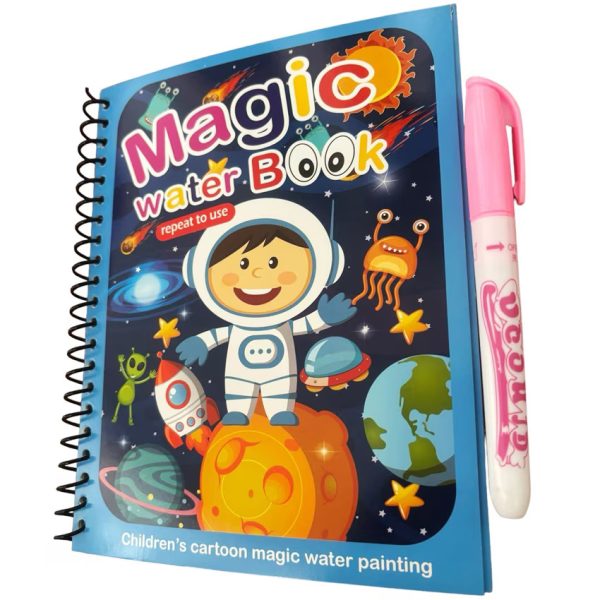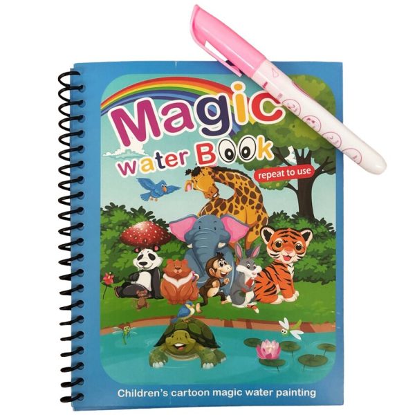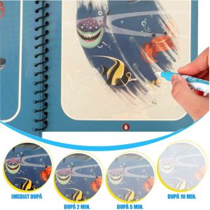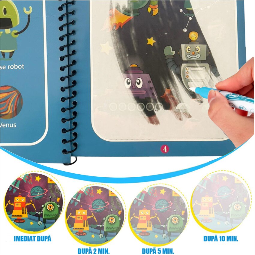 Carte de colorat cu apa Magic Book, tip Aquadoodle, Reutilizabila, plina de culori vibrante, pentru fete si baieti 2, 3, 4, 5, 6 ani, bebeLOGIC™