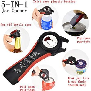 APLICARE LARGA: Deschizatorul de borcane 5 in 1 vine cu 4 manere diferite si dimensiuni multiple pentru a se potrivi cu majoritatea capacelor plus deschidetorul de sticle 5 in 1 care de asemenea este excelent pentru a deschide sticlele cu varfuri scurte si greu de apucat. Viata ta va fi mult mai usoara cu ele.