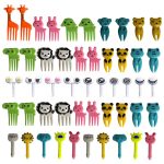 Set 50 furculite decorative bebeLOGIC™ model animale pentru copii, pentru tort, fructe, desert, Happy Birthday