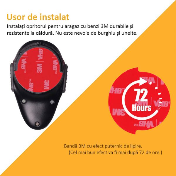 Sigurantele se fixeaza cu banda adeziva 3M, iar ulterior pot fi indepartate fara a lasa urme.