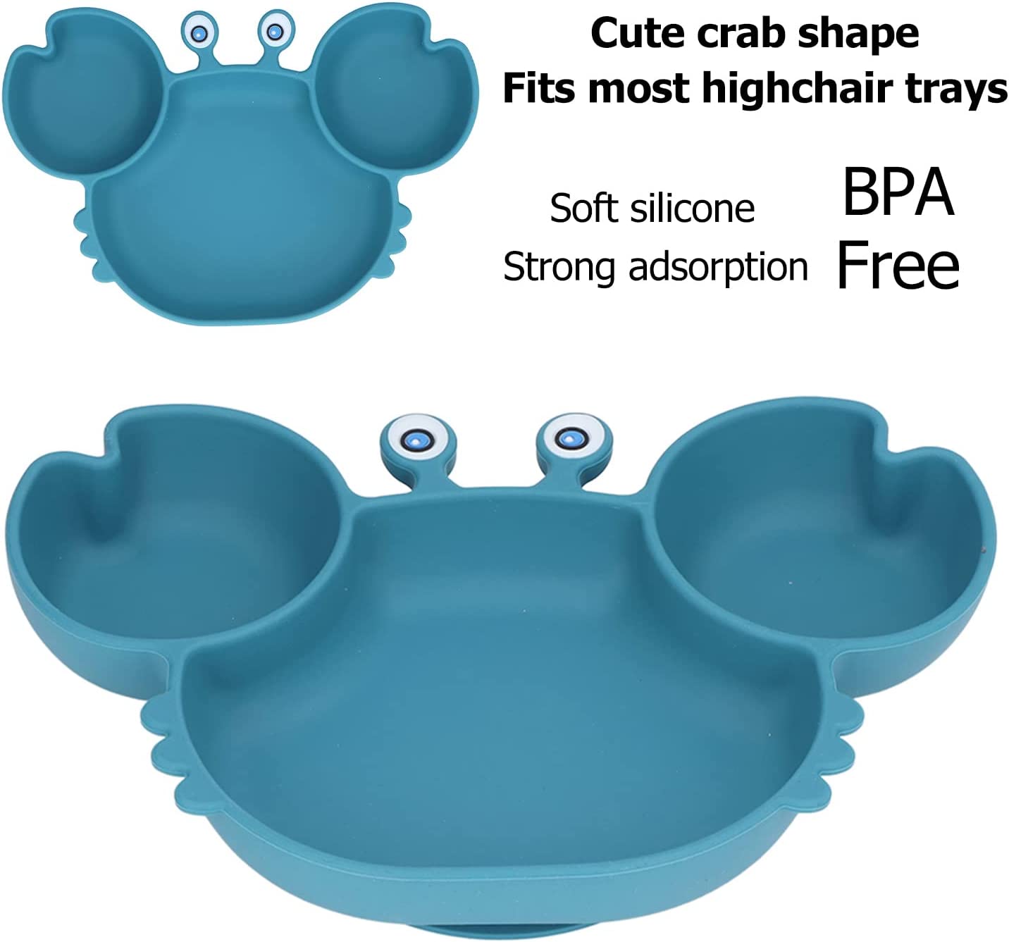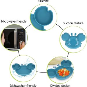 Set diversificare din silicon, platou cu furculita si lingura, vesela mic dejun, pranz, cina, model crab, bebeLOGIC™